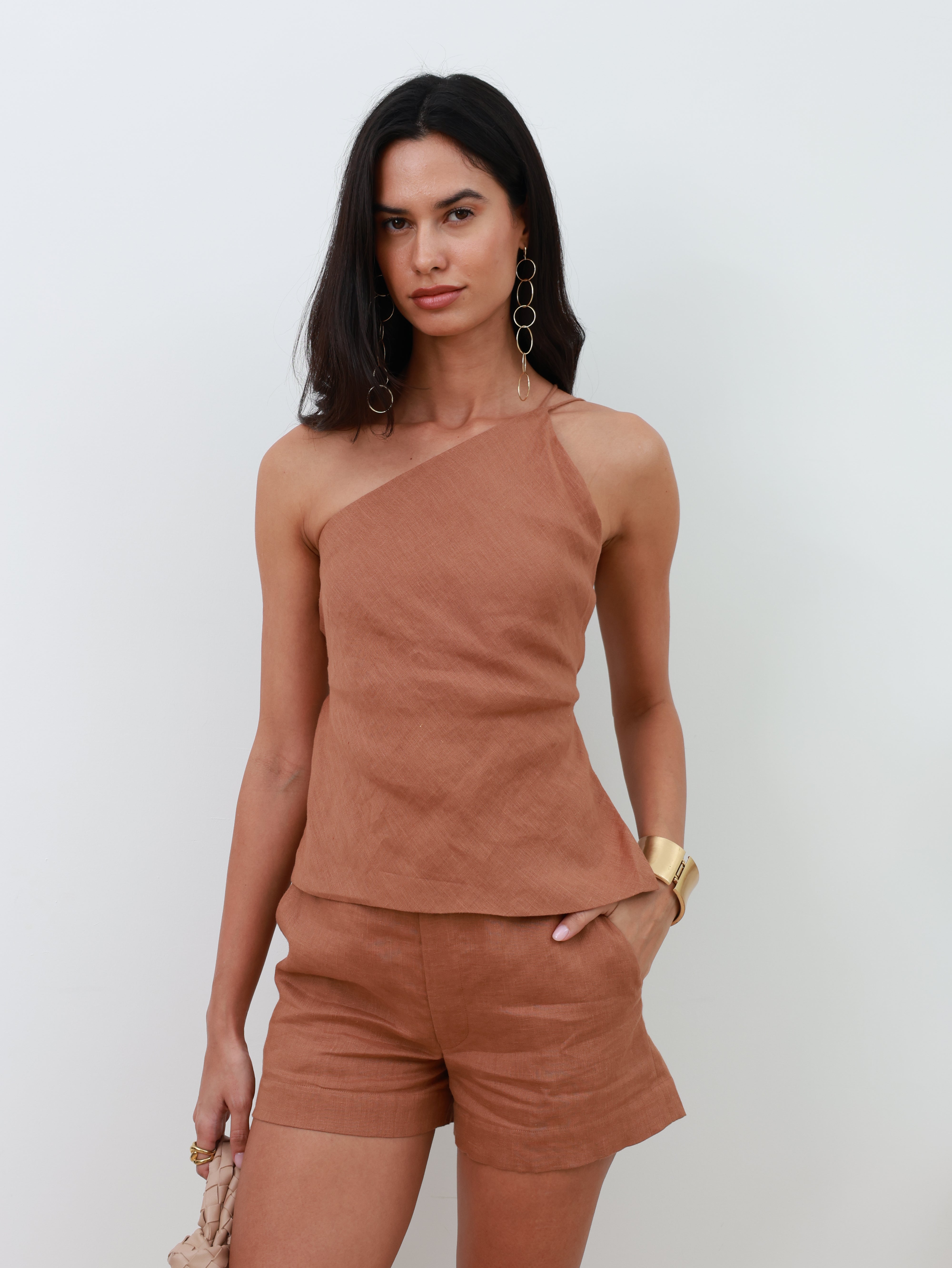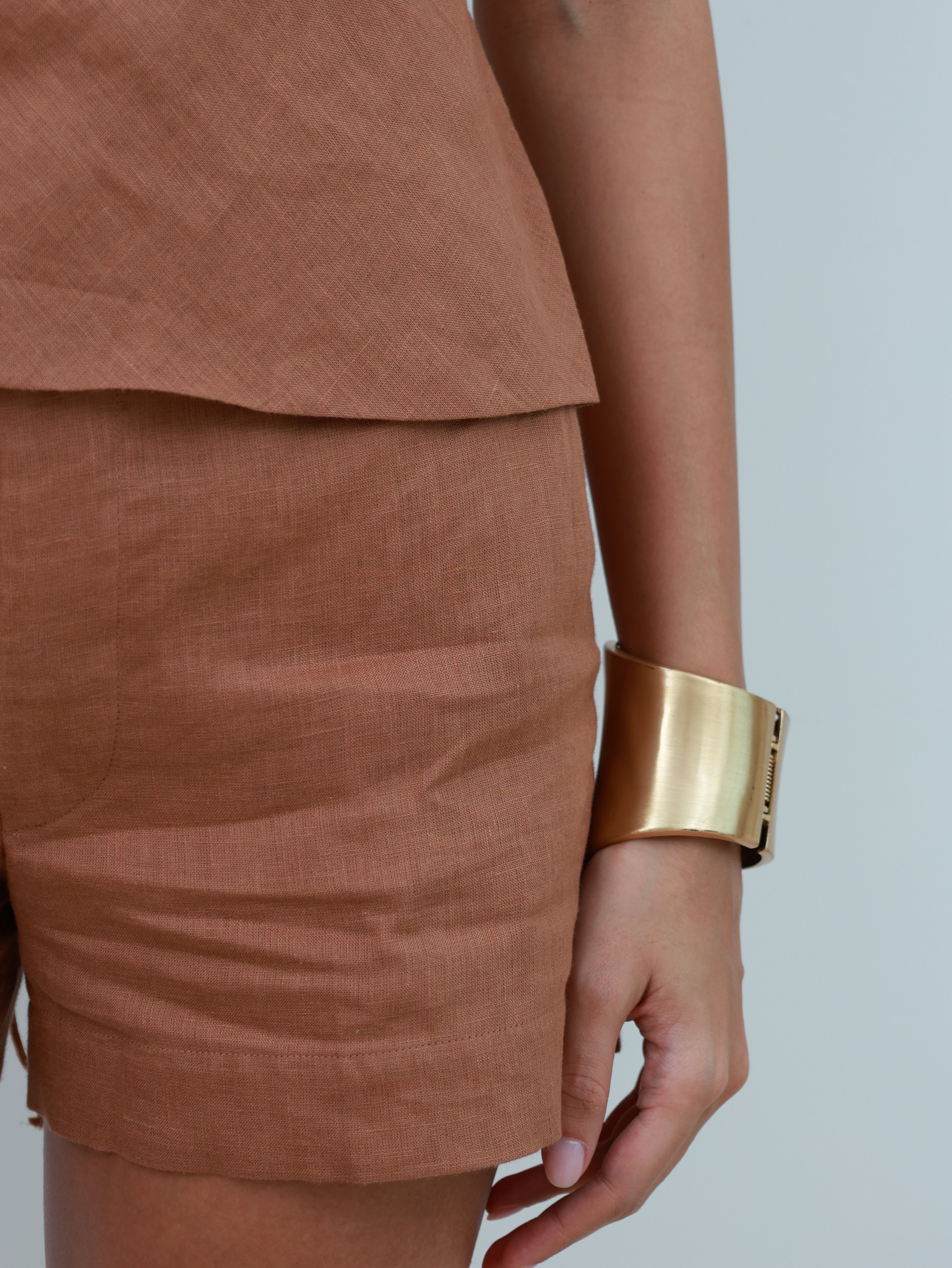 Crafted from 100% linen as the main fabric and fully lined with soft cotton mulmul, the pieces are breathable, lightweight, and gentle on the skin. Designed in a Small (S) fit, the top measures 22” while the shorts measure 15”, creating a balanced silhouette that transitions effortlessly from day to evening.