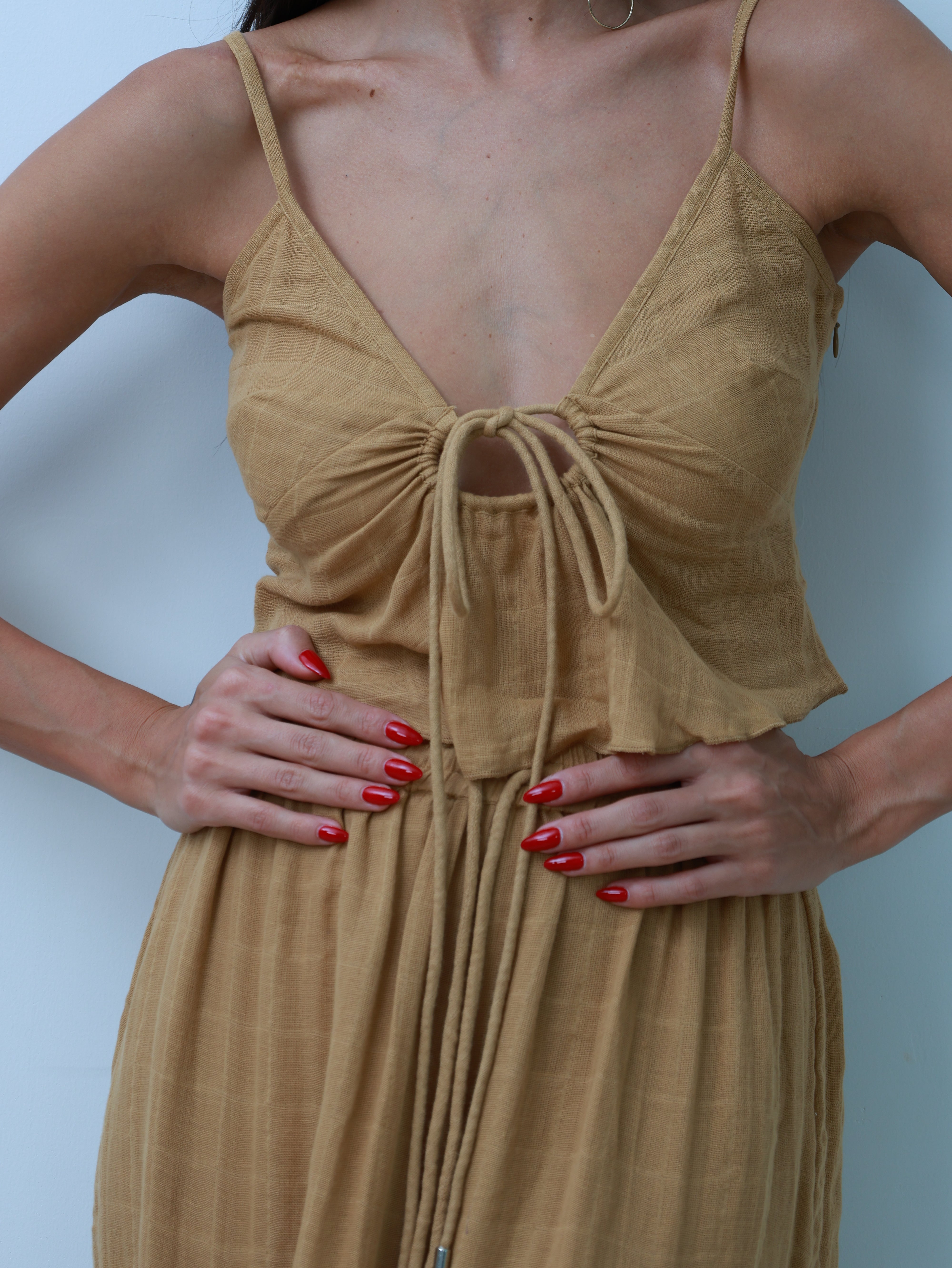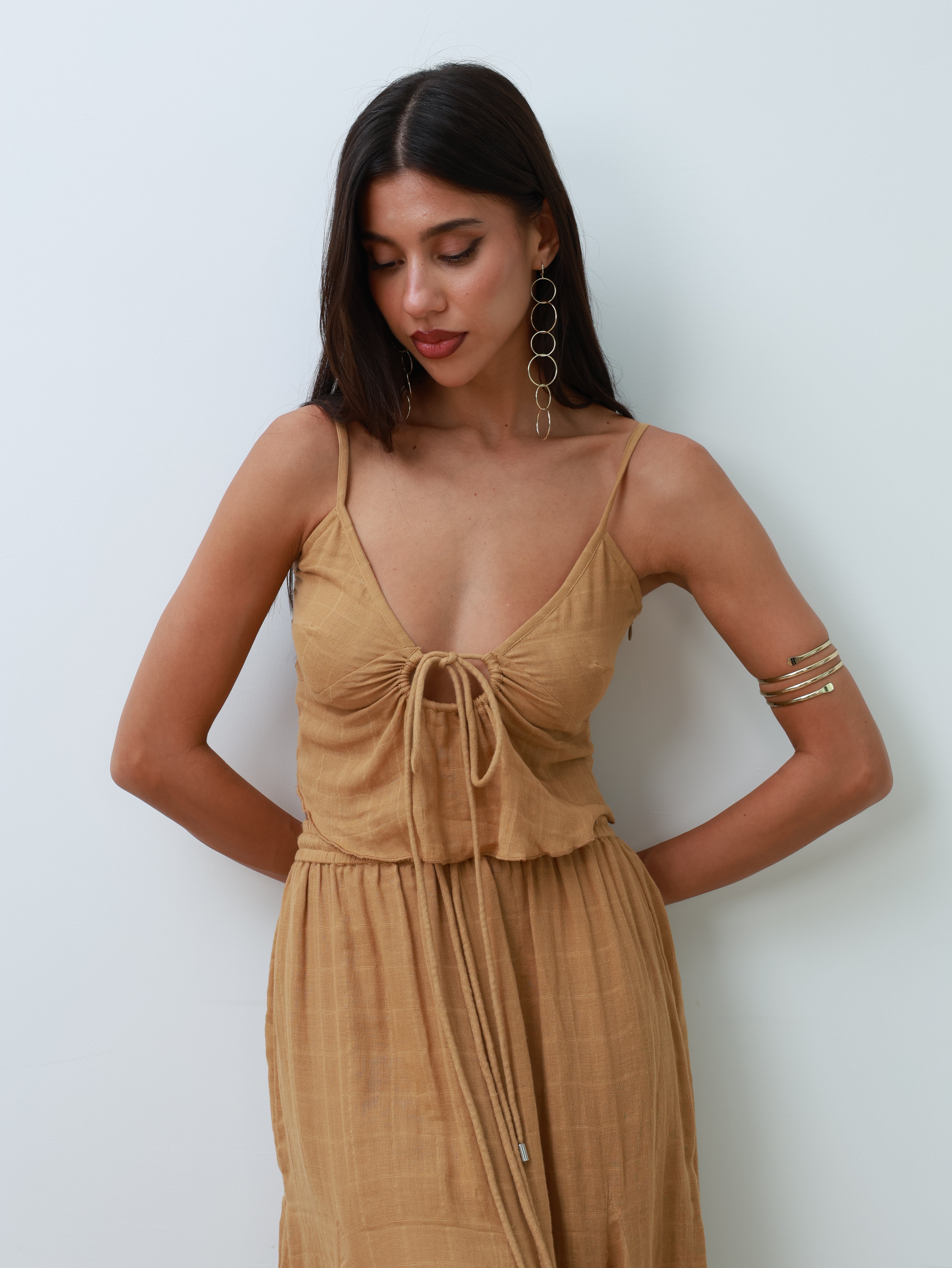 Designed with a balance of structure and charm, this short-length top brings a modern edge to everyday dressing. The front keyhole with drawstring closure adds a playful touch, while adjustable buckles and straps at the back ensure a customizable fit. A discreet side-seam zipper allows for easy wear without compromising the clean silhouette.