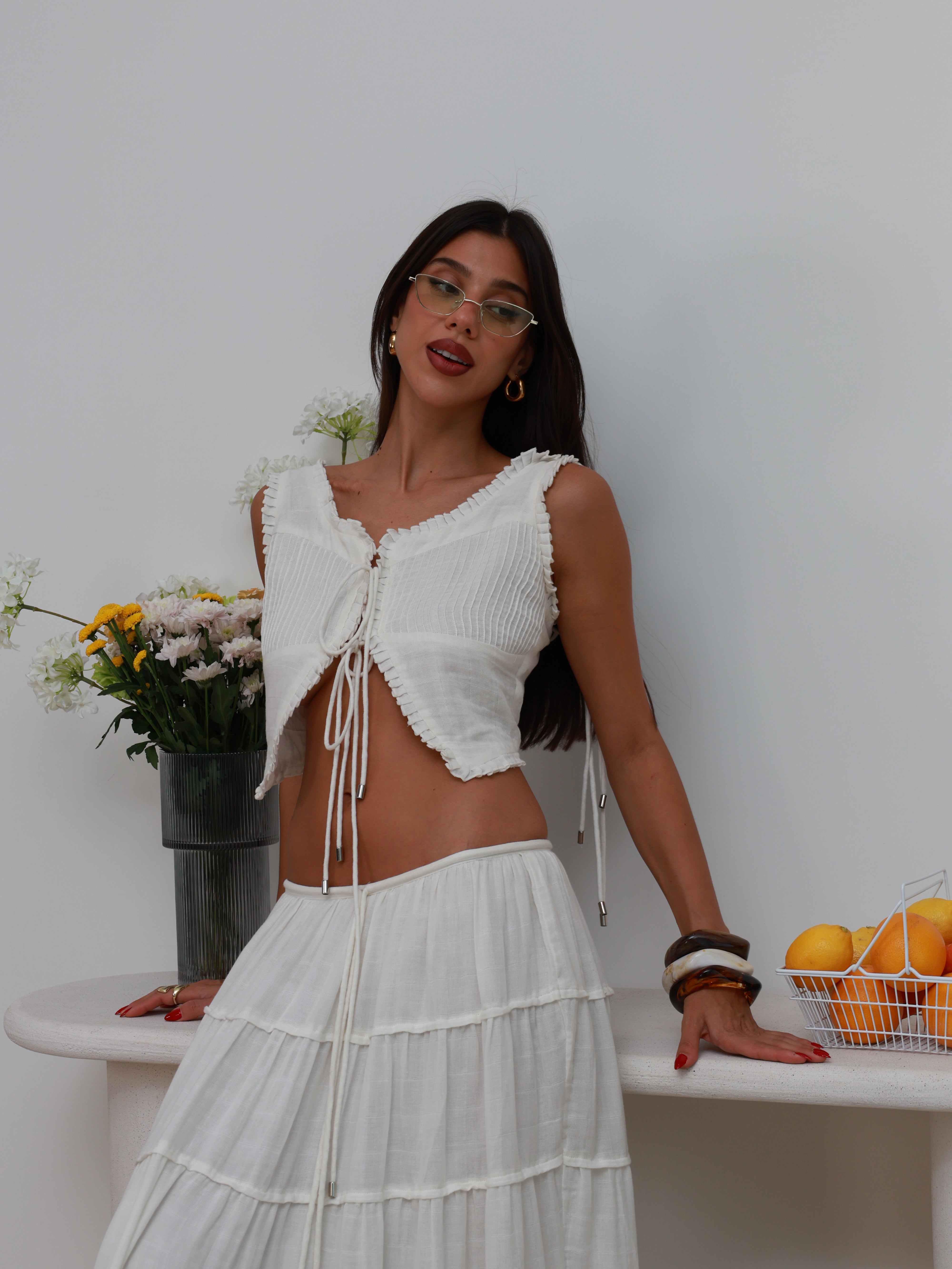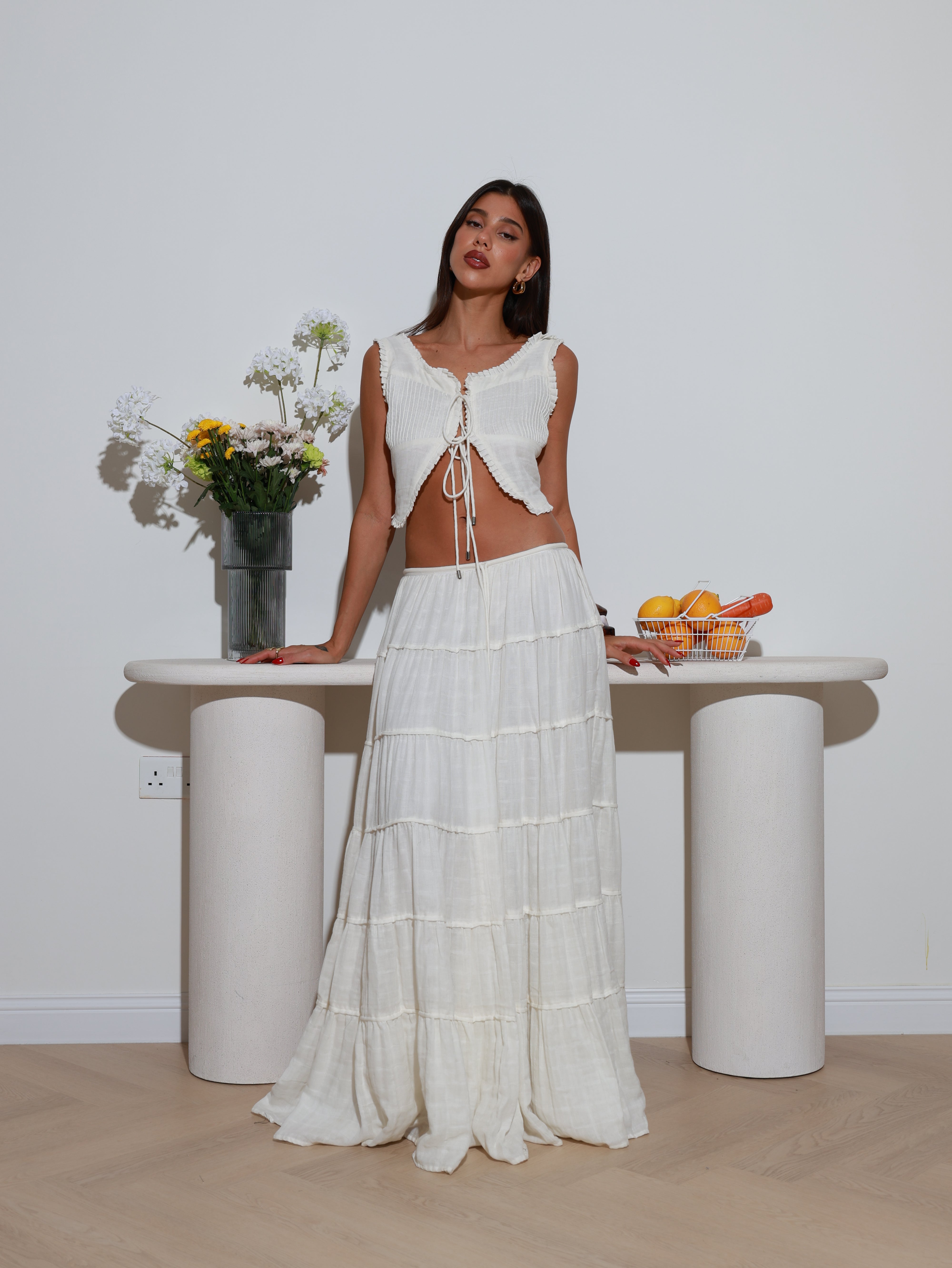 Crafted from plain gauze cotton, the fabric feels light, breathable, and airy against the skin—ideal for warm days or layered looks. Whether styled for a casual outing or dressed up for a resort evening, this skirt moves with ease and grace.