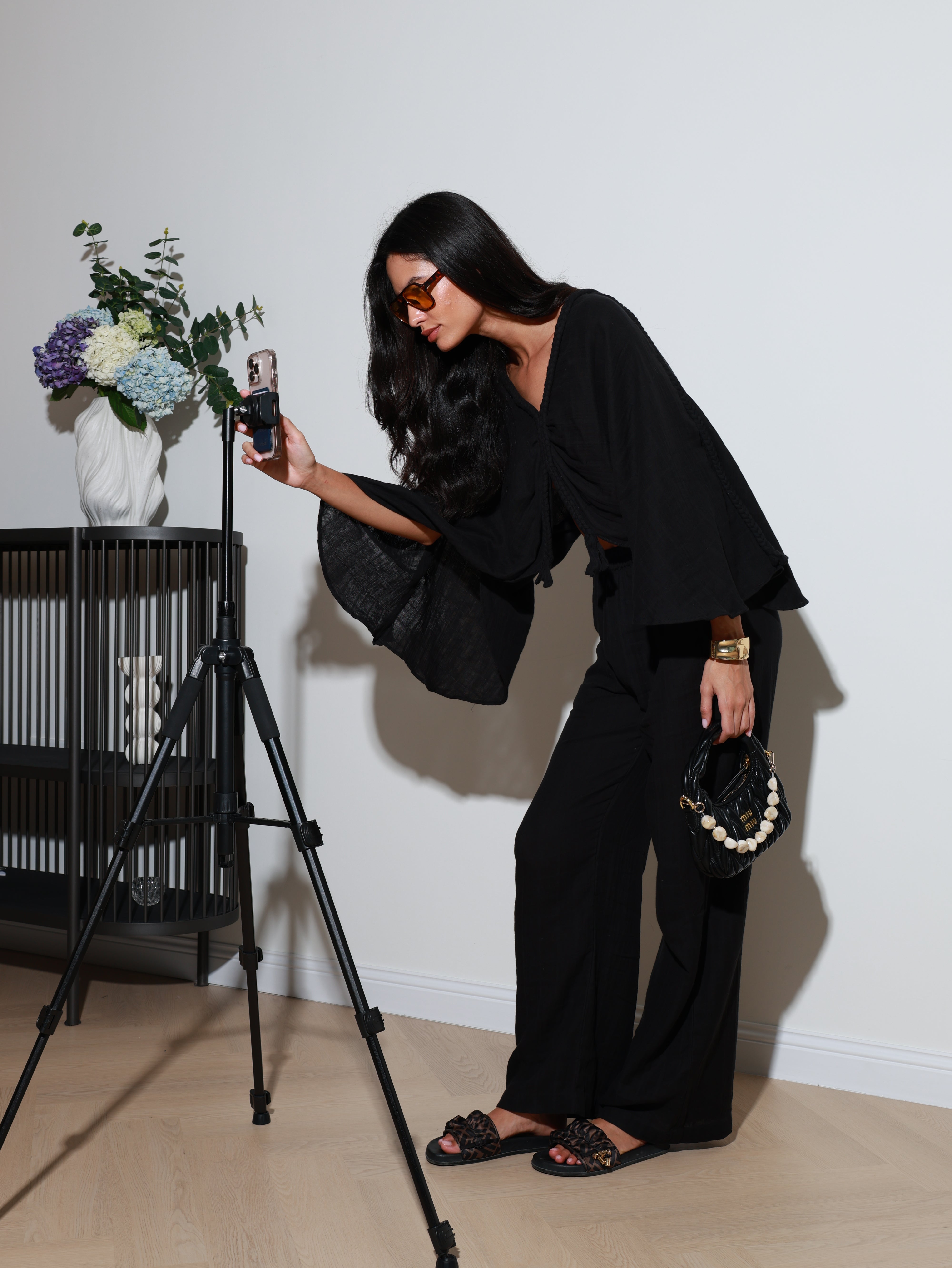 Crafted in plain box gauze as the main fabric, the pieces are light, breathable, and versatile—perfect for day-to-evening dressing. Cut in a Small (S) fit, the top measures 23” in length while the pants measure 42”, creating a balanced, elongated profile.